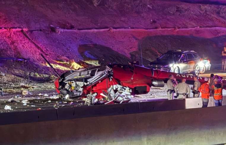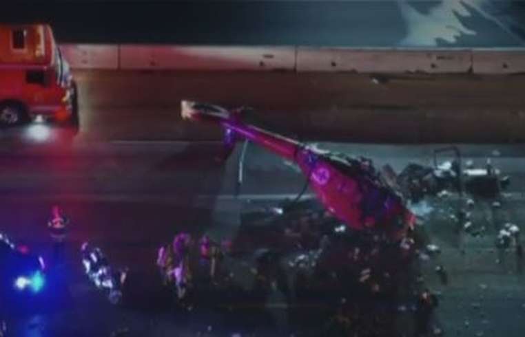 Un helicóptero médico se estrelló en una autopista muy transitada de California, hiriendo gravemente a tres personas.