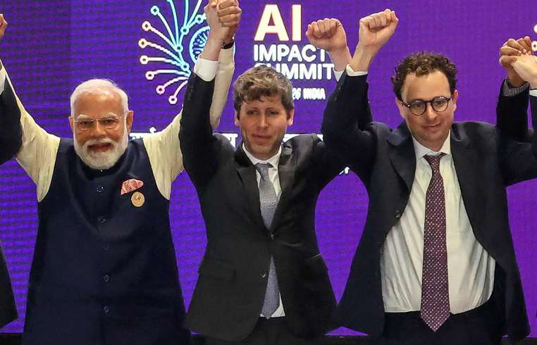 AI leaders come together in India for a summit and a memorable moment of connection.